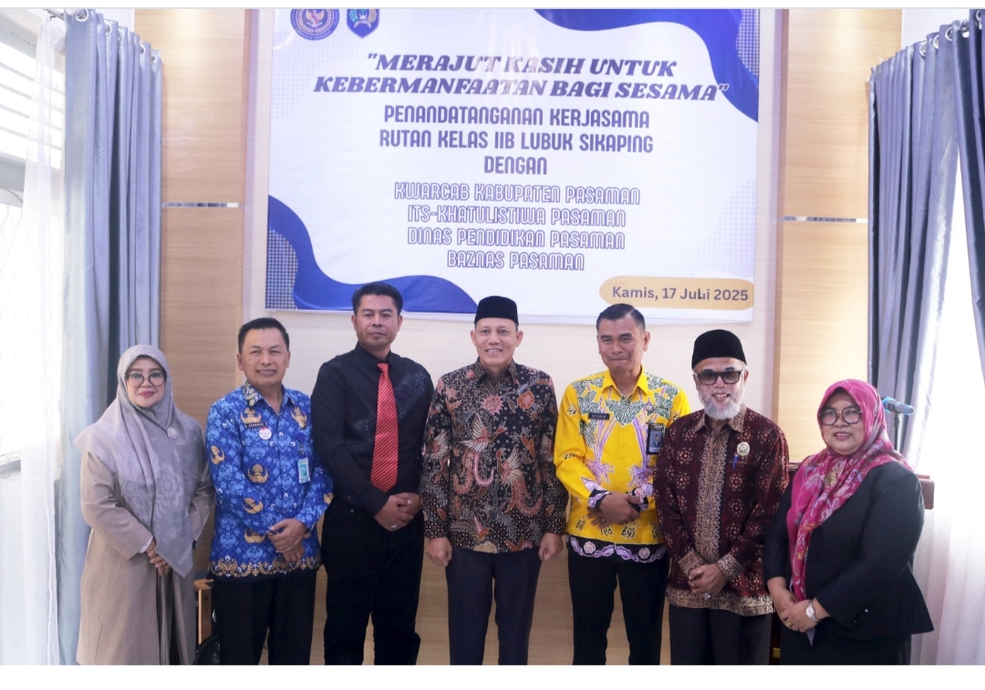 Badan Amil Zakat Nasional (BAZNAS) Kabupaten Pasaman menandatangani Perjanjian Kerja Sama (PKS) dengan Rumah Tahanan Negara (RUTAN) Kelas IIB Lubuk Sikaping dalam sebuah acara bertema “Merajut Kasih untuk Kebermanfaatan Bagi Sesama”, sebagai bagian dari komitmen bersama dalam mendukung kesejahteraan dan kemandirian warga binaan.