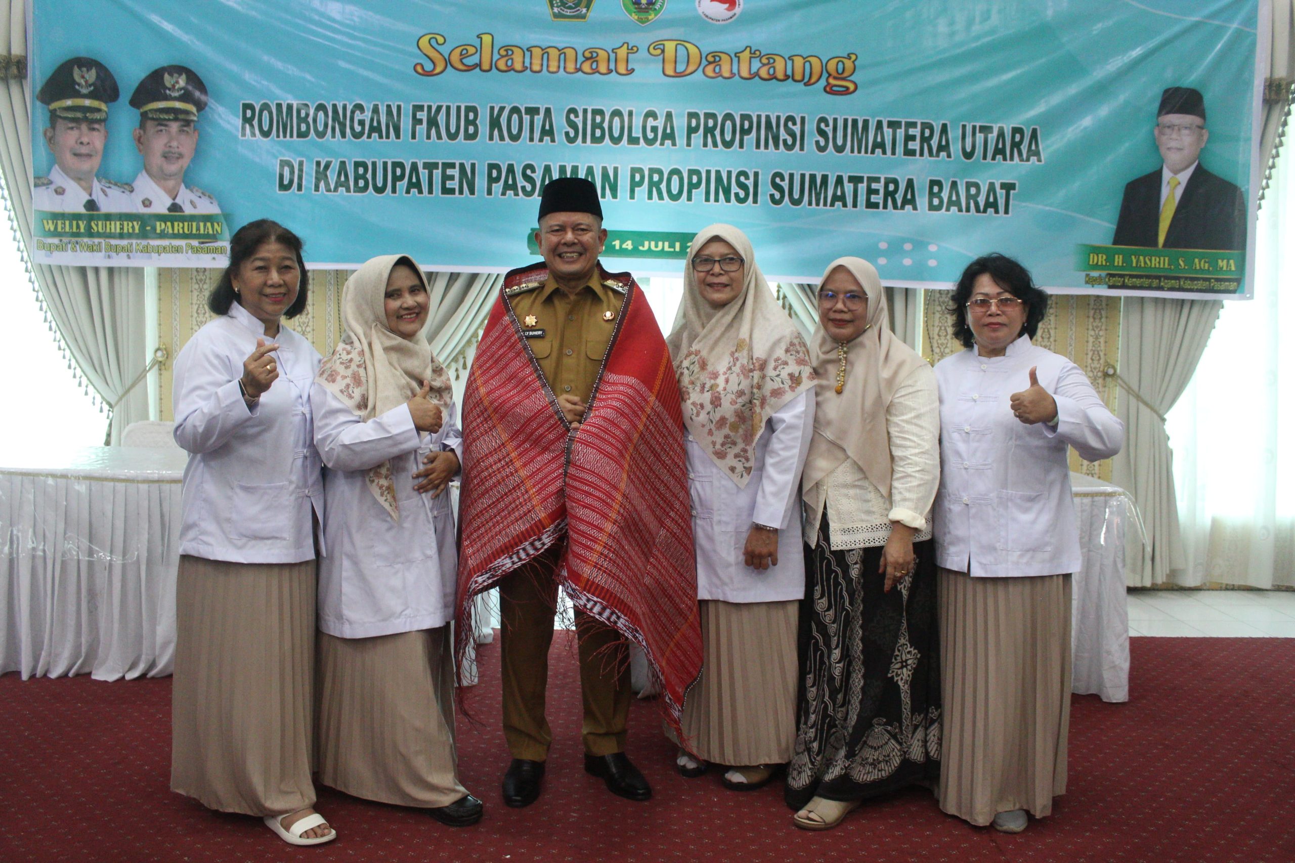 Sebagai bentuk keakraban dan hubungan yang baik, Ketua dan Pengurus FKUB Sibolga dalam kesempatan tersebut menyerahkan selembar kain ulos dan melempangkan langsung ke bahu Bupati Pasaman Welly Suhery dan sebaliknya kedua FKUB tersebut juga melakukan penyerahan cindera mata, berupa Plakat lambang daerah masing masing.