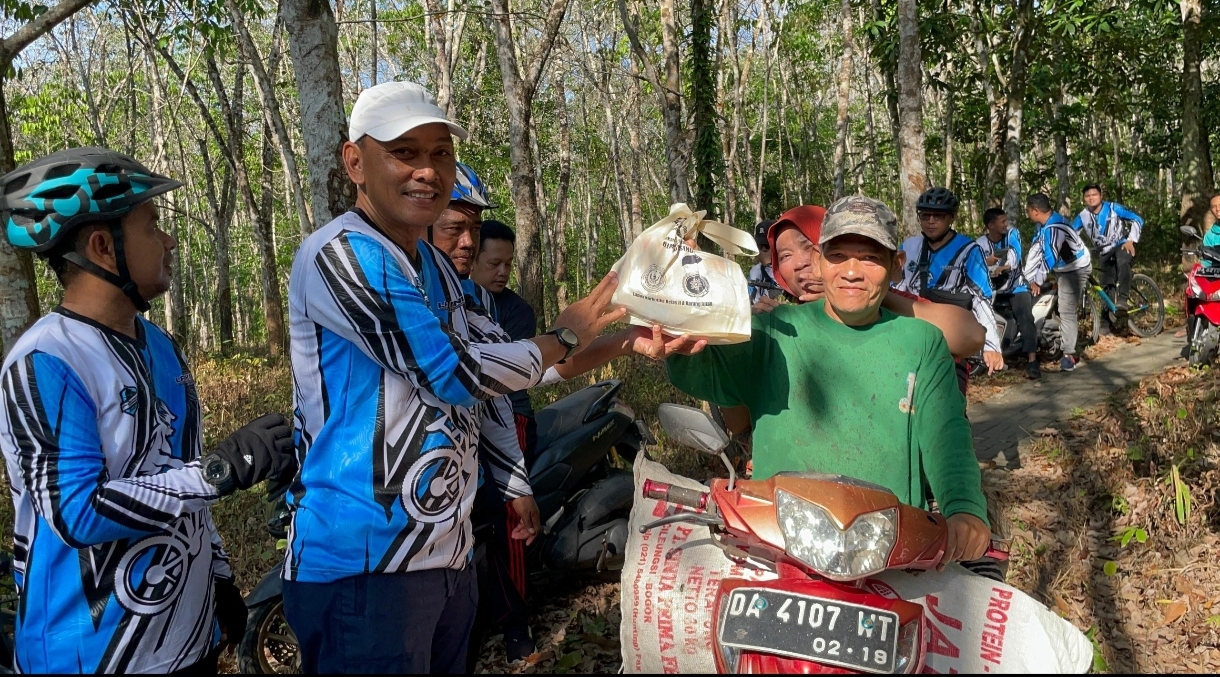 Sebelum menyelesaikan rute, rombongan berhenti di area kebun karet. Mereka melepas lelah dan menikmati makan bersama di bawah pepohonan, menciptakan suasana akrab dan santai di tengah keseharian yang biasanya penuh tugas.