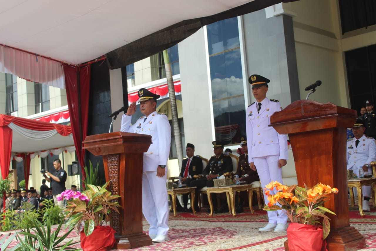 Puncak peringatan HUT RI ke 80 di Kabupaten Pasaman ditandai dengan pelaksanaan upacara pengibaran Bendera Merah Putih yang dipimpin langsung oleh Bupati Pasaman Welly Suhery di halaman kantor bupati berlangsung khidmat, Minggu.