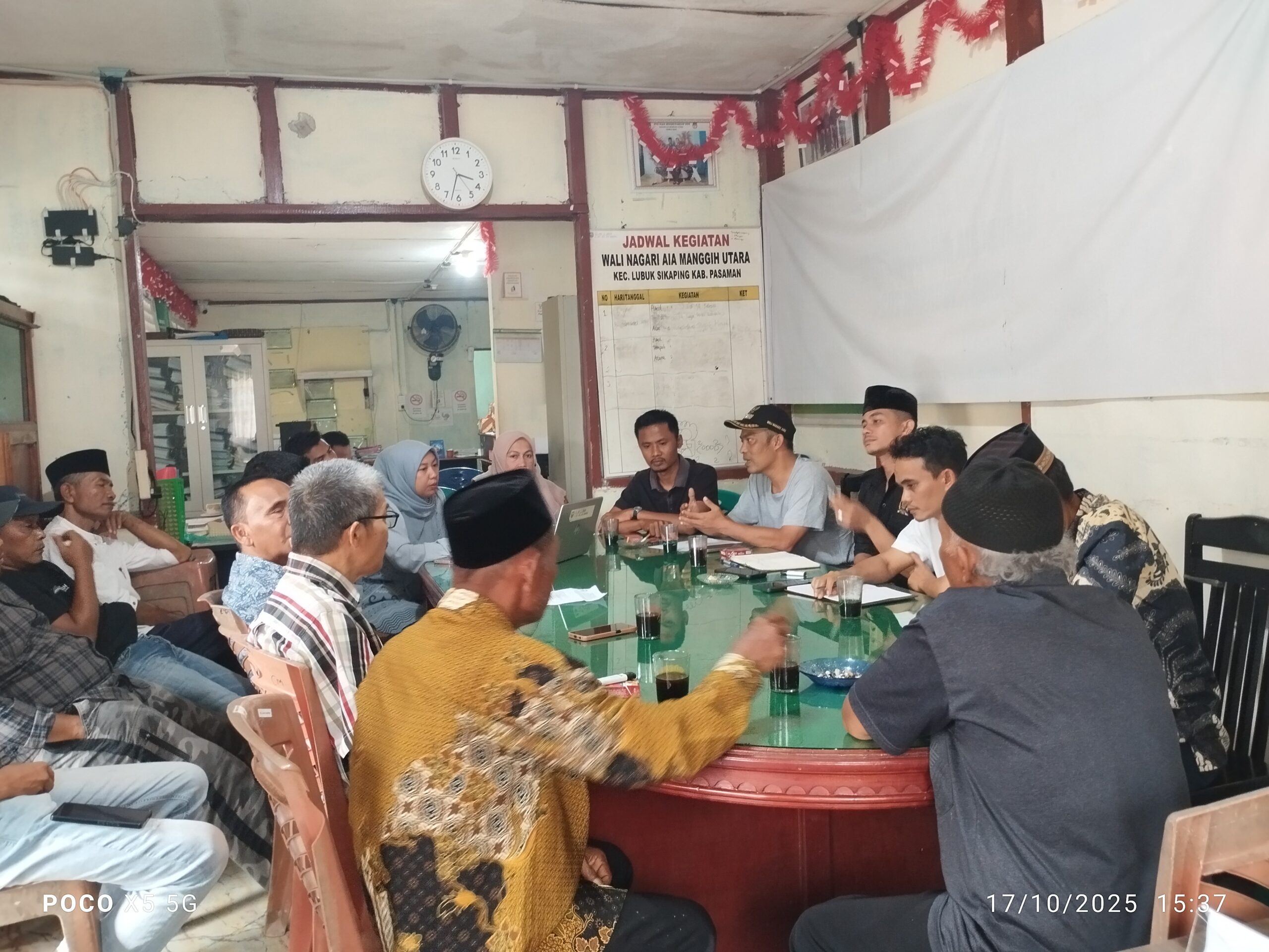 Nagari Aia Manggih Utara laksanakan musyawarah tindak lanjut Rencana Kerja Pemerintah (RKP) Anggaran 2026 dan musyawarah bulan Bhakti Gotong Royong 2025 di Ruang Rapat Kantor Nagari Aia Manggih Utara pada hari jumat 17 Oktober 2025.