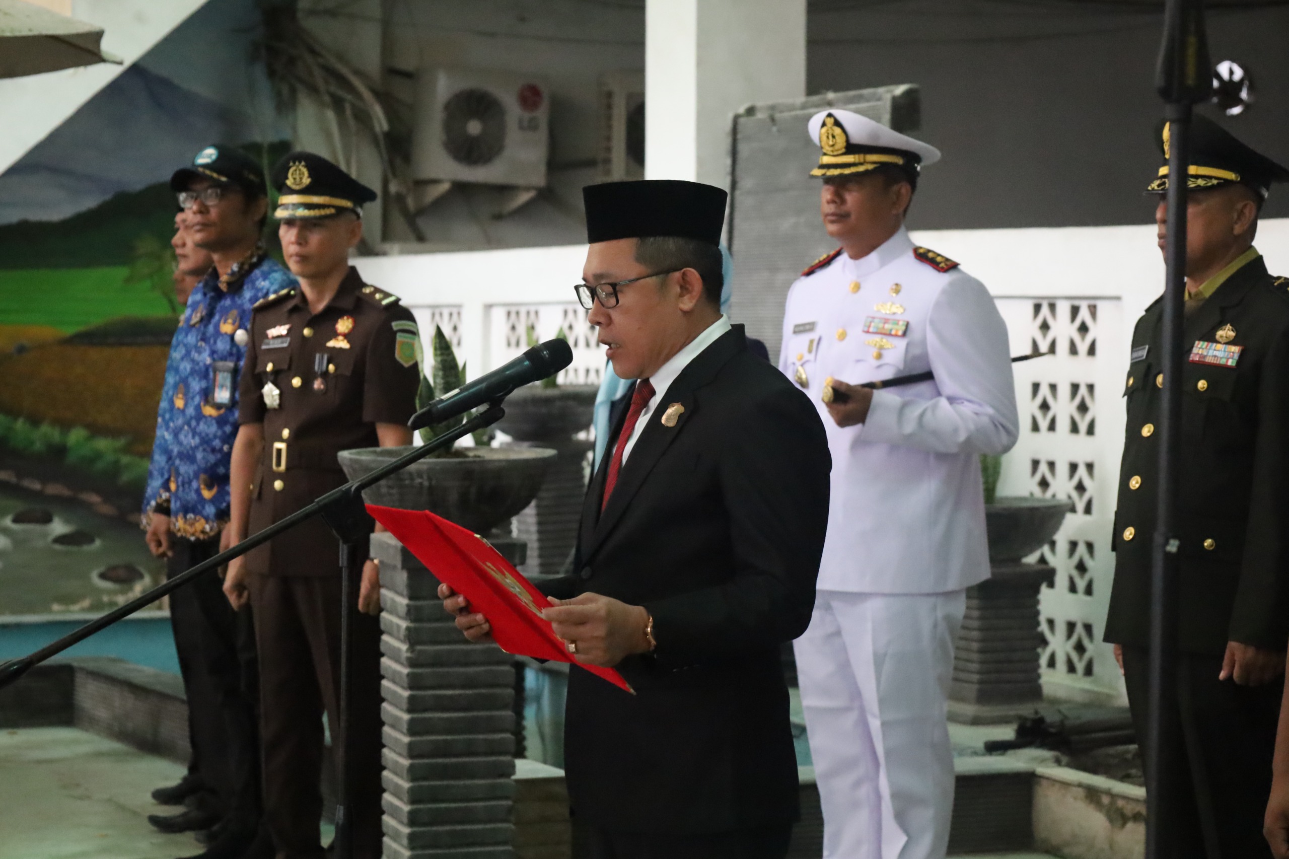 Melalui momentum upacara ini juga menjadi momen refleksi bagi seluruh anggota Aparatur Negara Sipil, TNI, Polri dan PPPK untuk meningkatkan kinerja dalam melayani masyarakat, menjaga keamanan, dan menegakkan hukum dengan berpedoman pada nilai-nilai Pancasila,” sebutnya lagi